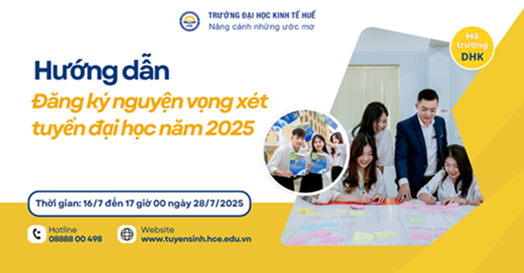 Trường Đại học Kinh tế Huế thông báo đăng ký xét tuyển bổ sung đợt 1 vào các ngành đào tạo trong kỳ tuyển sinh đại học hệ chính quy năm 2025